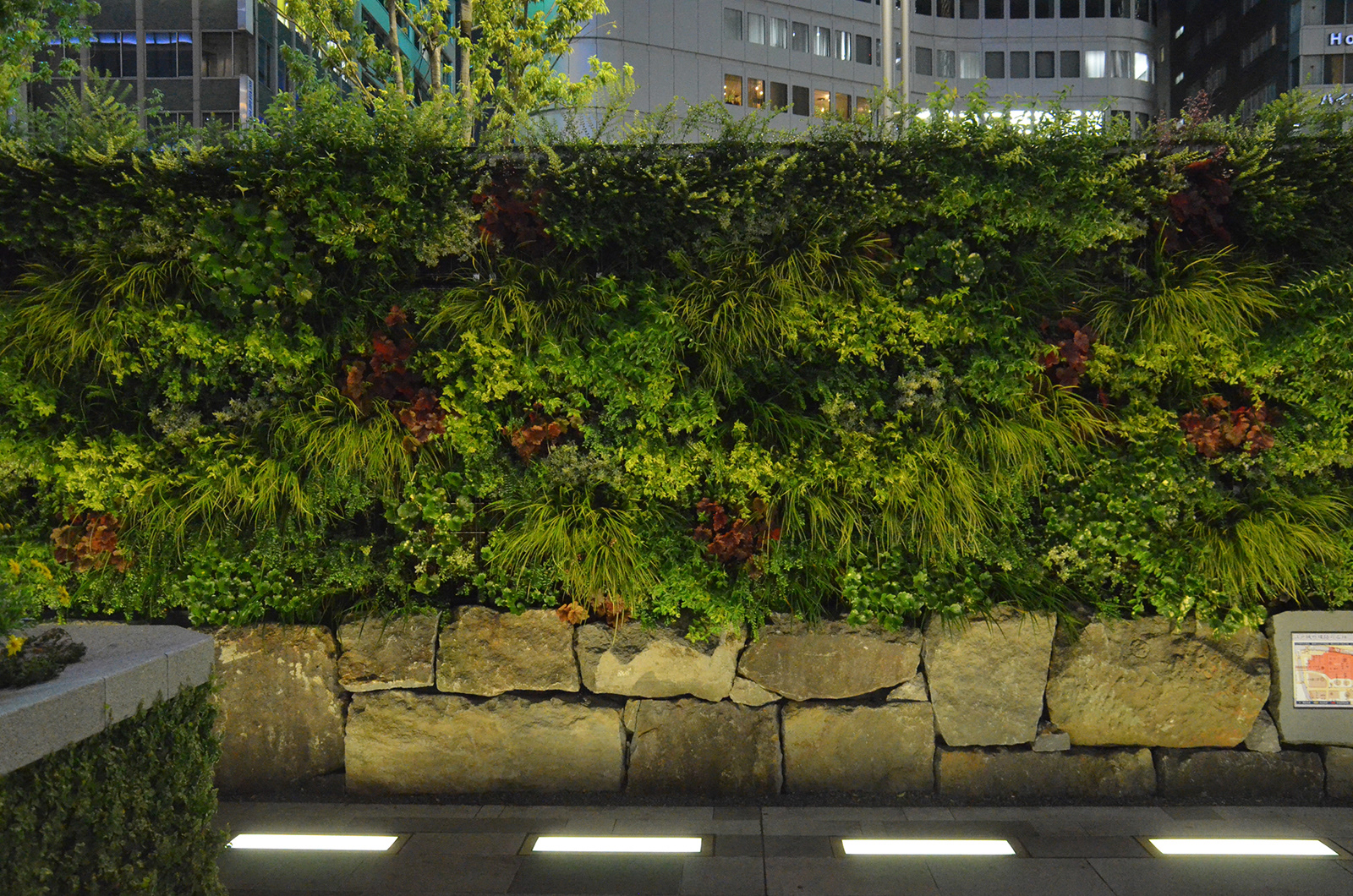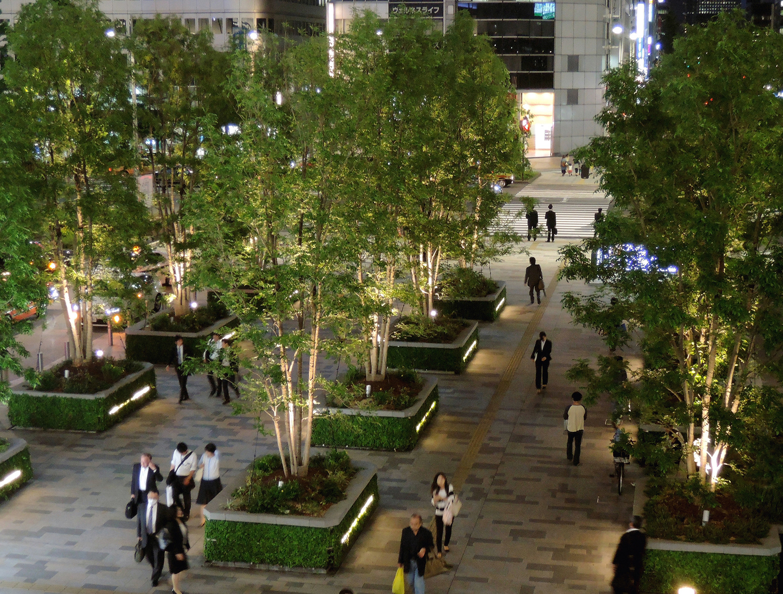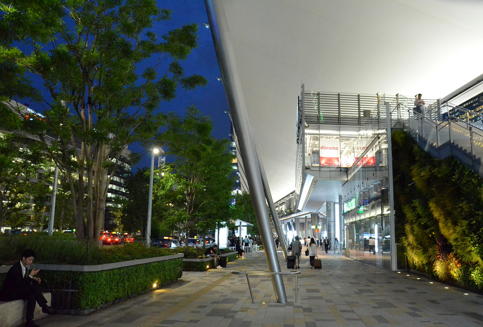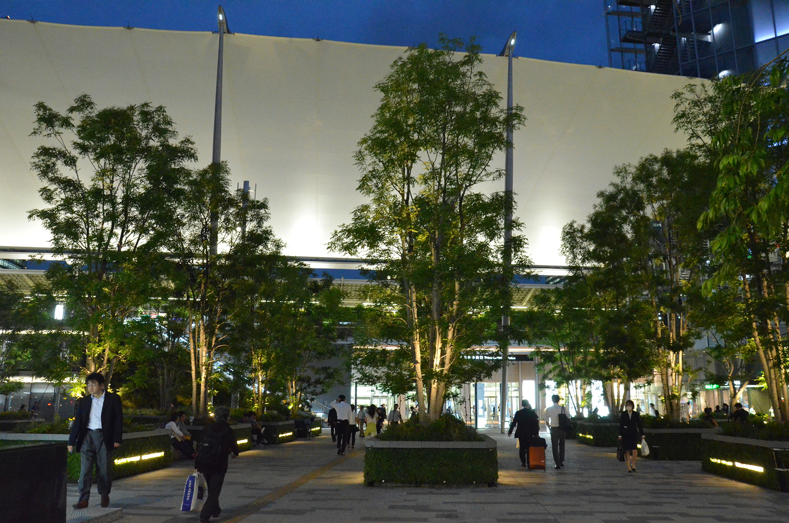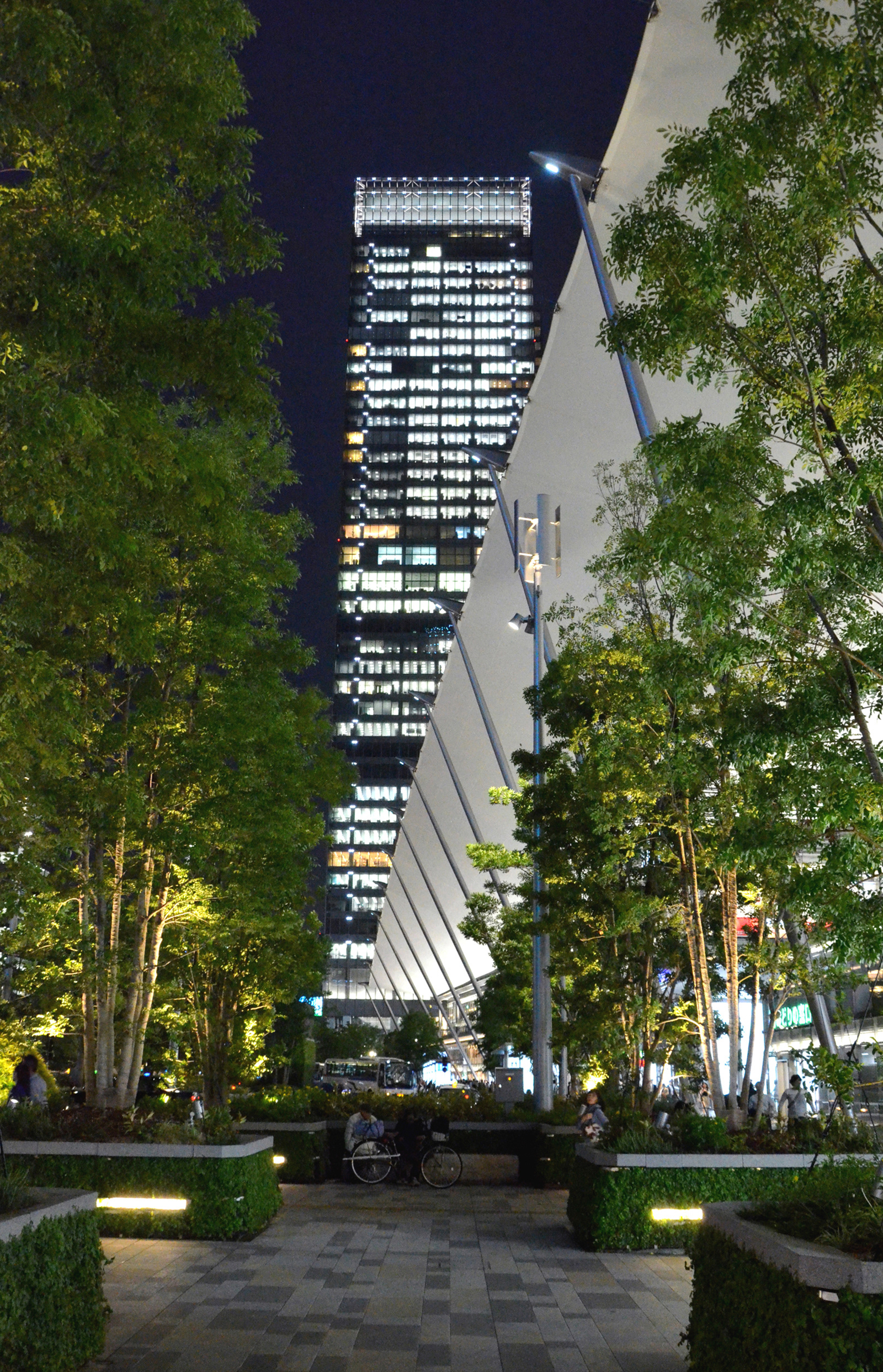 2003年から参画してきた八重洲口開発計画の中で最後のエリアである駅前広場が竣工を迎えた。東京駅八重洲口は丸の内の歴史性に対し、未来を象徴する玄関口と位置づけられ、先進性・先端性をテーマに計画されている。照明デザインはグランルーフの一枚布の大胆さと緑豊富な広場の特徴を活かし、かつ駅空間として夜間景観の一体感を創出するよう、全体のダイナミックな連係と個々のきめ細やかな光の工夫に注力してきた。高木、植栽枡、石組みなどの修景要素の光と交通機能を補完するポール照明、ベンチ照明、バスシェルター照明などの機能照明によって構成されている。