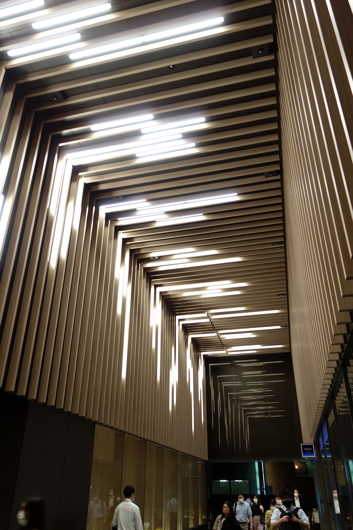 3Fのメイン通路は駅と街をつなぐ動線にもなっており一日中多くの人が行き交う。照明はこの主要動線となる共用部、地上階の車動線、上階のロビー空間を始め、低層部の賑わいに貢献する大規模なグリーンウォールの演出照明、スレンダーな外観の頂部を引き締める光などを計画した。頂部の光は通常時、時や季節に応じて緩やかに変化し、また行事に合わせたイベントパターンを用意している。