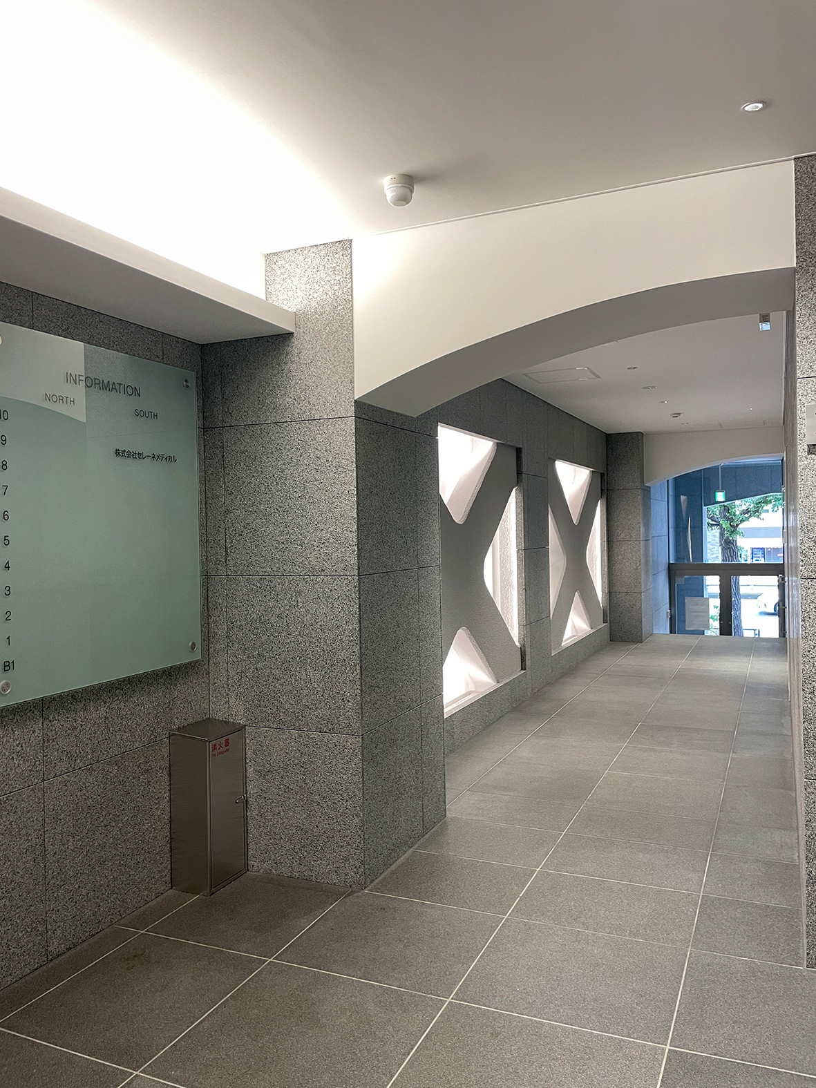 1981年に竣工したビルのフルリノベーションである。エントランスからEVホールまでのアプローチはむき出しの鉄骨を生かし、間接の柔らかな光で浮かび上がらせた。各オフィスフロアは調光調色のシステム照明により、朝、昼、夜のシーンをプリセットすることで、オフィスアワーにメリハリをもたらしている。