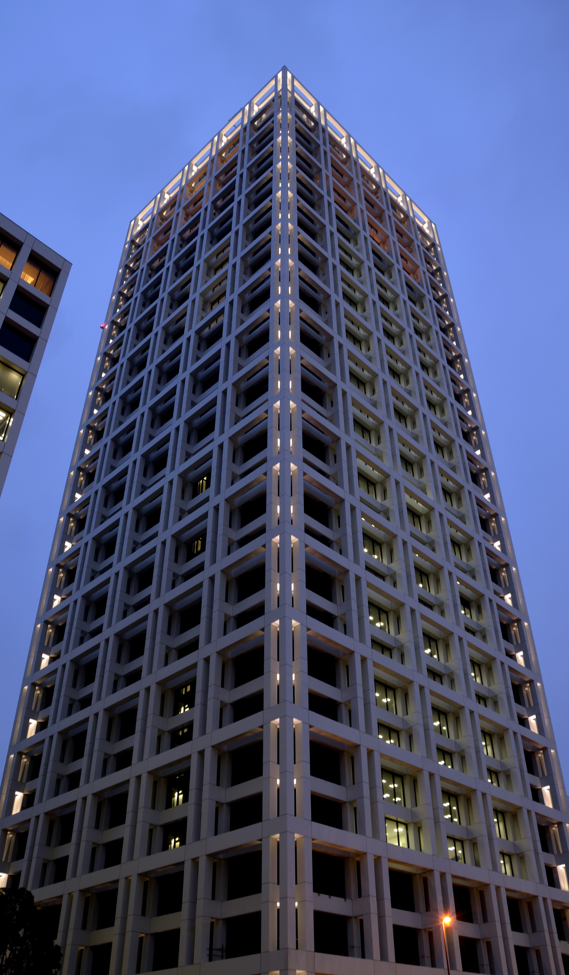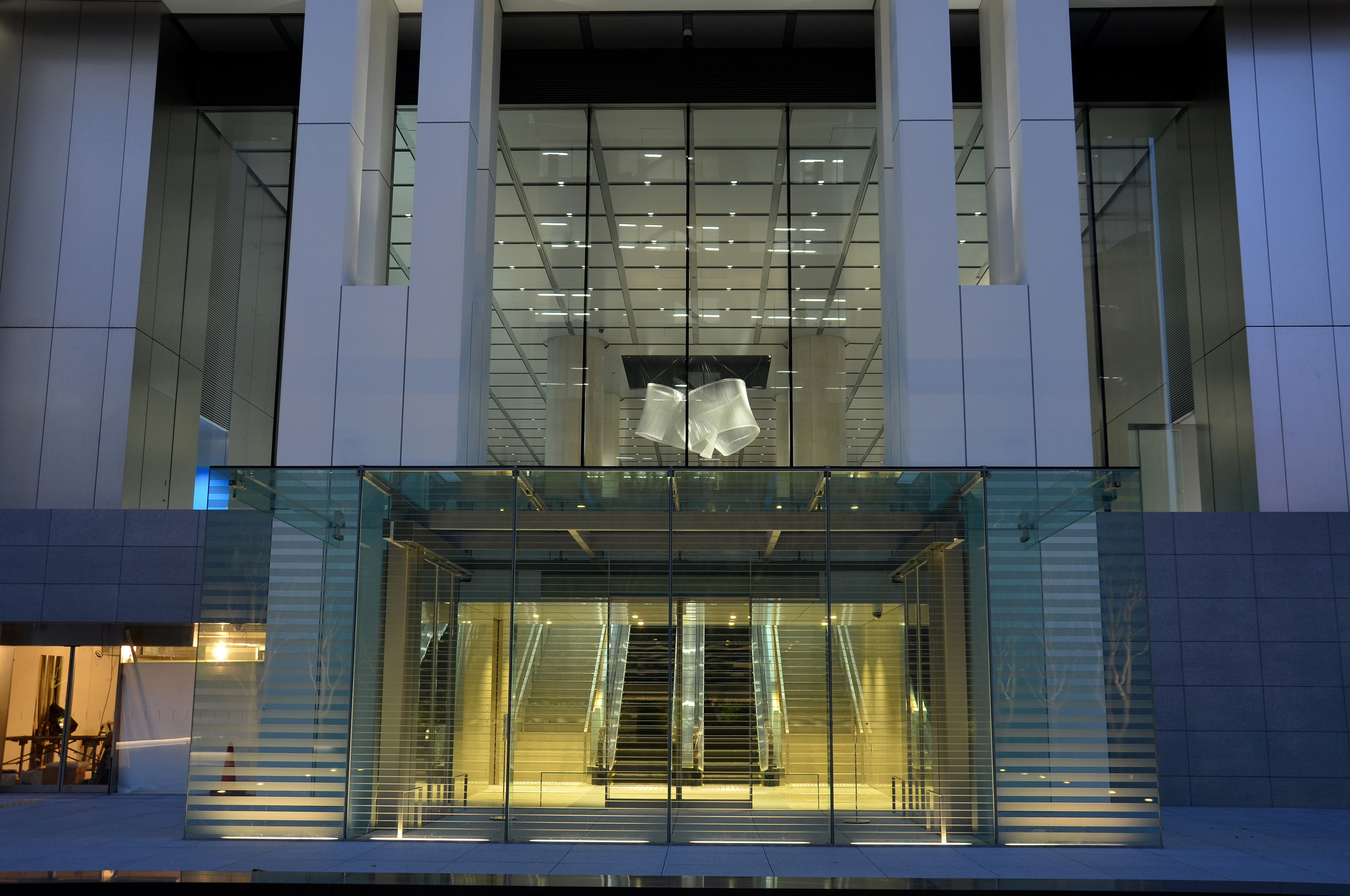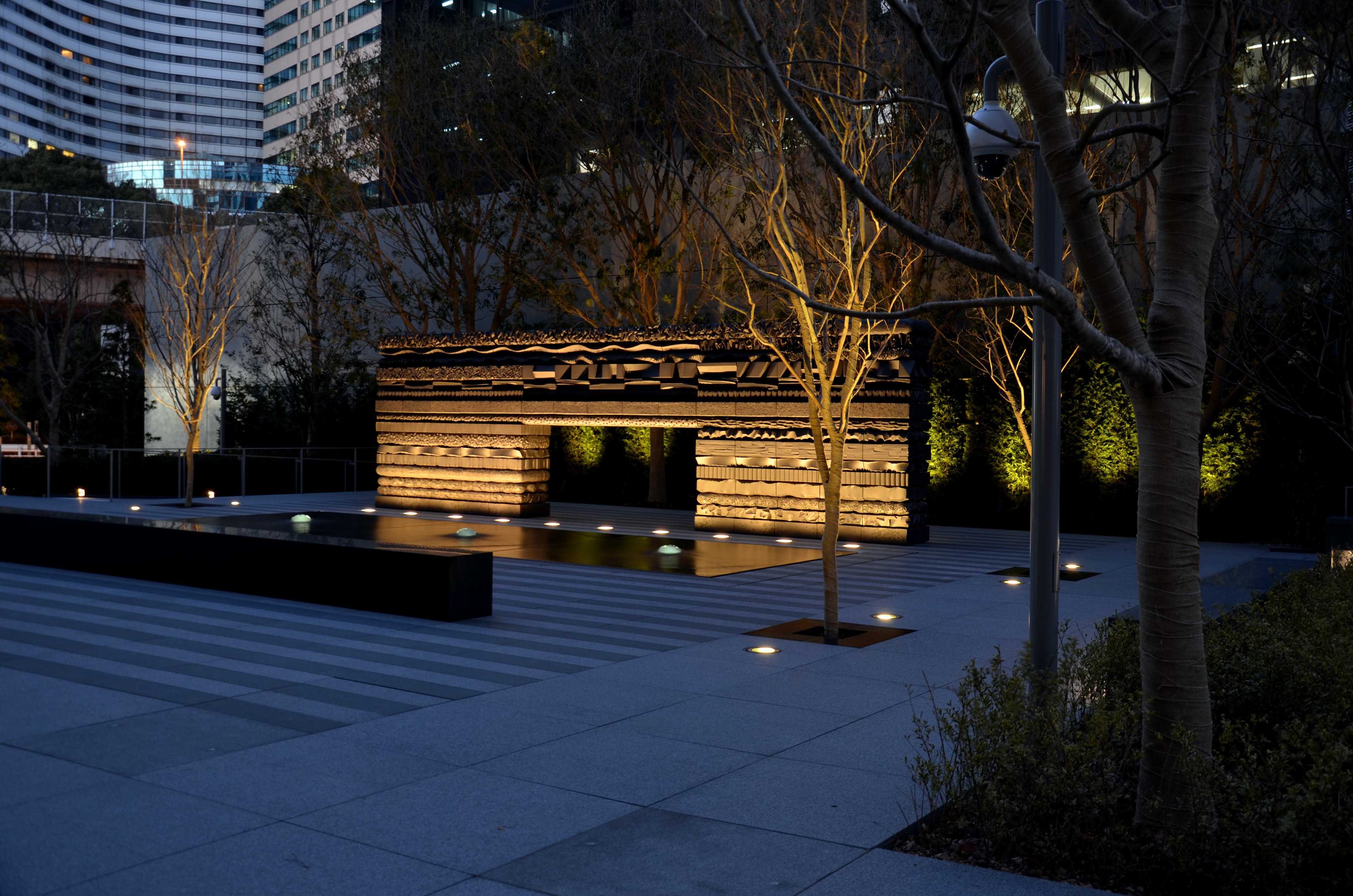 ホテル、オフィス、商店街などさまざまな都市機能が集積する赤坂見附に複合機能を備えた超高層ビルが誕生した。アウトフレームのファサードは白を基調にしたモノトーン諧調で端正な表情が印象的である。建物外観の照明は室内の光とのコンビネーションを重視しエッジのみに限定。室内の状況や時間の変化に伴い光量を減じていくよう点灯プログラムを設定している。外構とエントランスホールなどのパブリックエリアの照明は精緻なデザインを活かすべく昼間の存在感を消し、夜間にはじめてその姿を現す。空間の象徴となるアートには素材が最も活きる手法と光質で効果的に演出している。外構アート:五十嵐威暢 エントランスアート:ニコラス・ワインスタイン