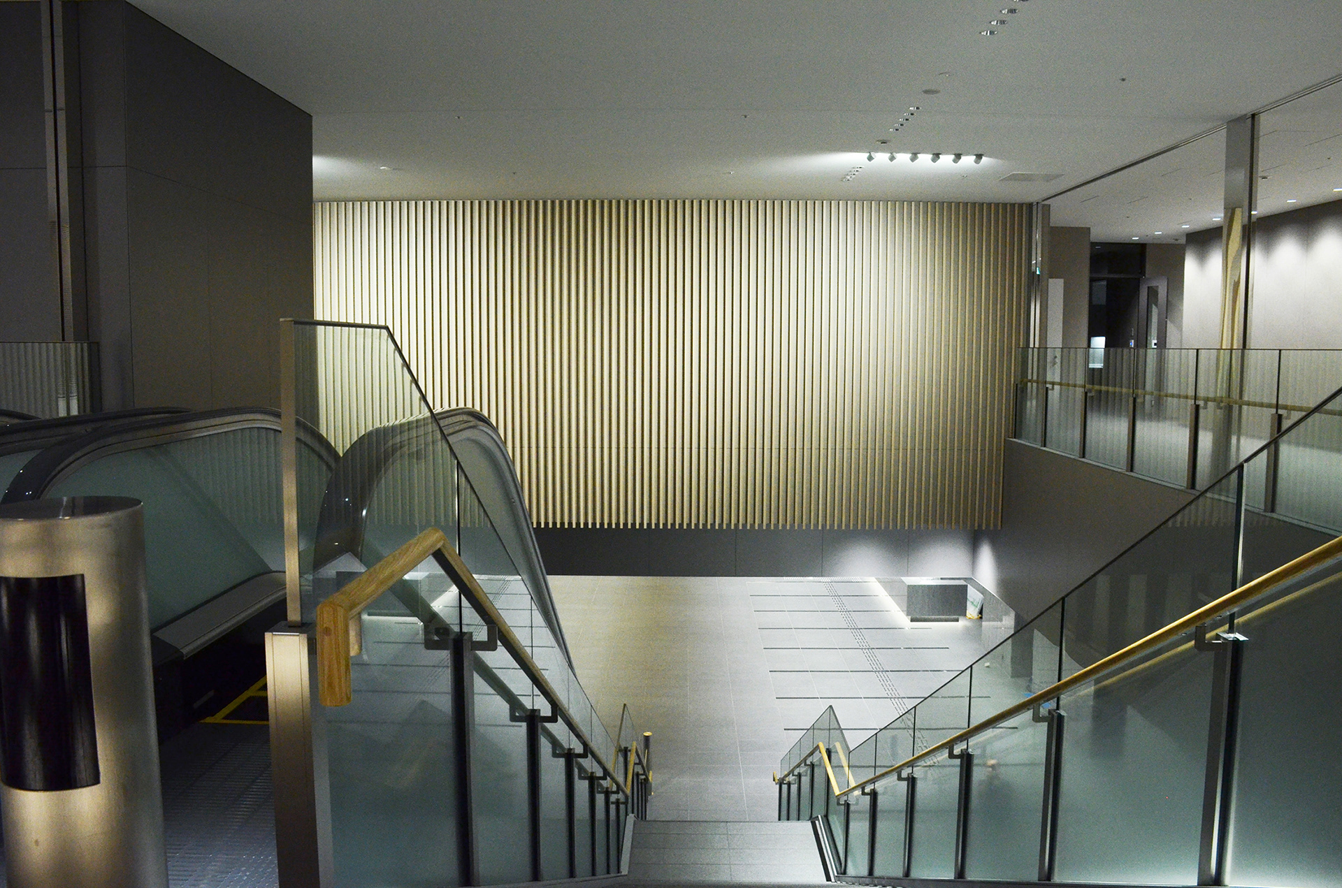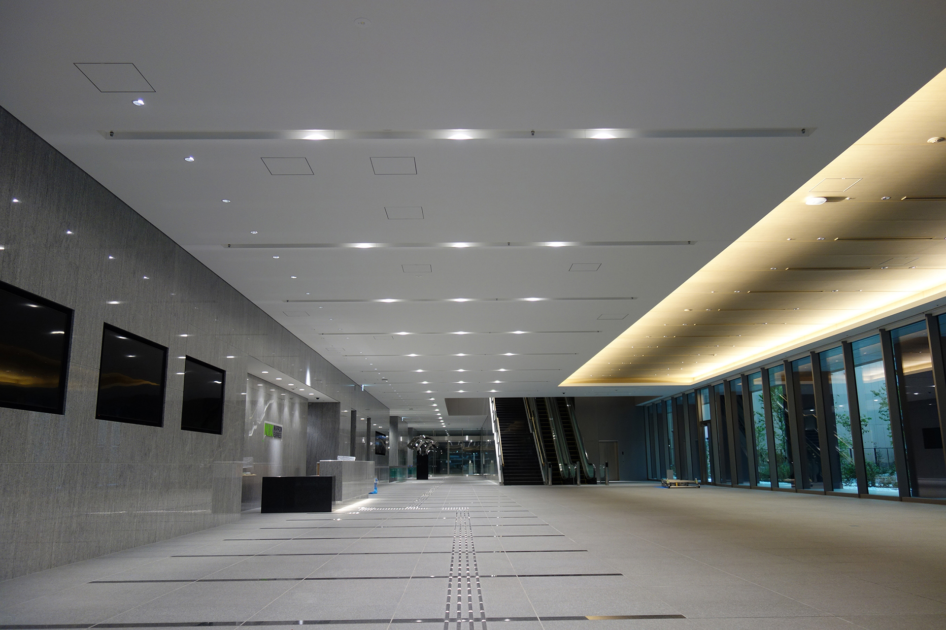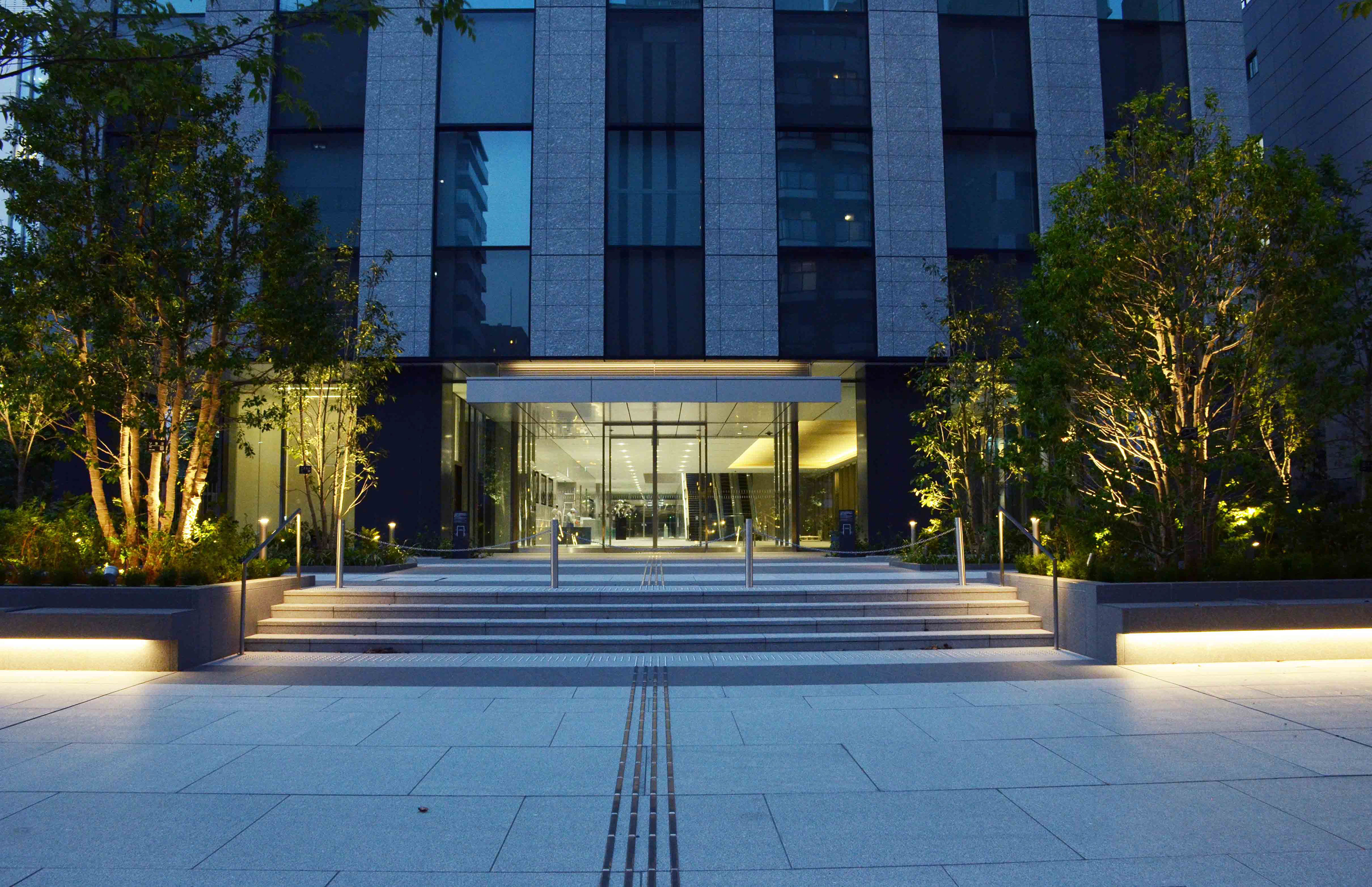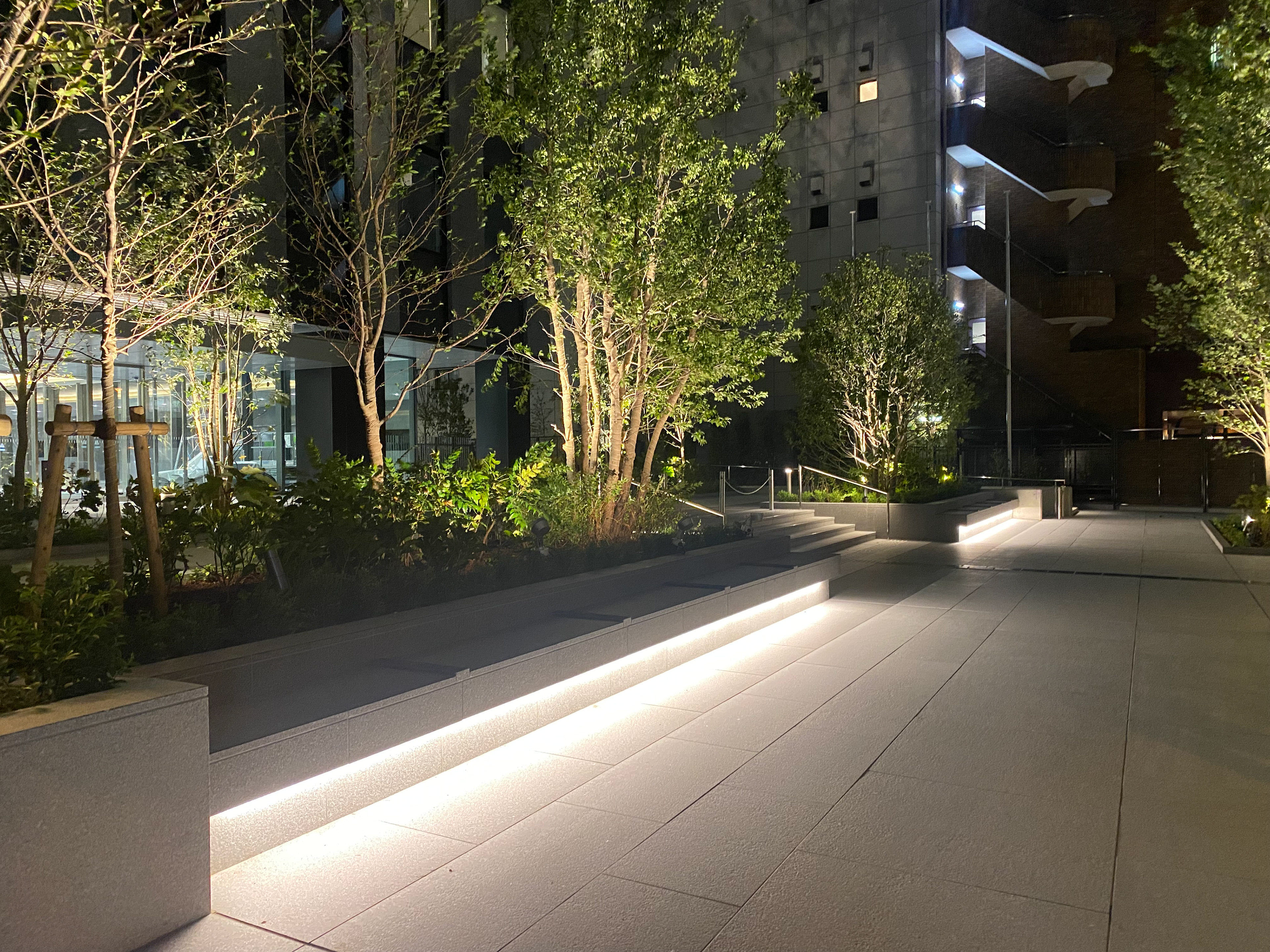 照明デザインはメインアプローチとなる南側外構から1Fのエントランスロビー、2Fホワイエへ至る共用部、建物外周部の通路空間、庭園、駐車場などの外構エリアを担当した。