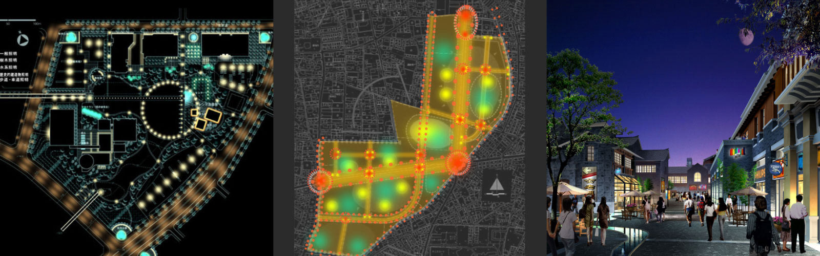 都市・地区は風土、履歴、構造、暮しむきなどによってその街らしい都市景観が形成されてくるものです。夜の暮らしや街並のあり方が問われるようになって久しい今日、照明環境が担うべき役割も大きくなってきています。新都市、既存街並形成、歴史的景観形成などを対象とし、光による魅力ある風景、暮らしやすい街並を創出することを目的としています。